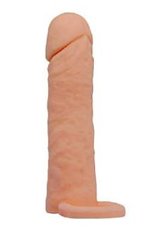 Capa peniana extensora produzida em cyberskin, um material macio, flexível e de alta qualidade que imita com perfeição a pele humana.