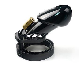 É um cinto de castidade masculino com 1 argola para escroto, e ponta vazada.