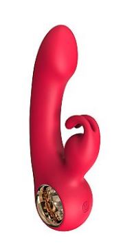 É um vibrador recarregável com estimulador de ponto G e clítoris.